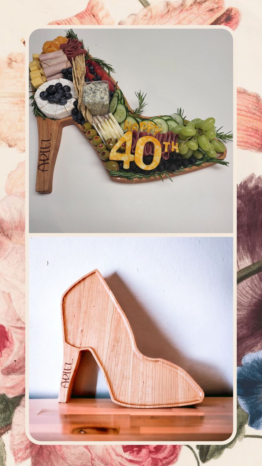 Turning 40 was a milestone for me, and I wanted to celebrate in style with a unique and artistic touch. That's when I came across the Stiletto Shoe Charcuterie Board, and it was love at first sight! Being the first to purchase this creative design made my birthday celebration even more special. The board is truly a piece of art, combining functionality with elegance in the most stunning way. When I reached out to Jeanette for ideas on how to incorporate the board into my birthday celebration, I was amazed by her creativity and attention to detail. She provided me with innovative suggestions that elevated the entire event and left my guests in awe. Thank you for your incredible ideas and for helping me create lasting memories on this special occasion. I highly recommend this exquisite piece of art to anyone looking to add a touch of glamour to their celebrations!" "I love it so much that the heel sits on my kitchen counter and I look at it everyday. It's now a permanent part of my decor.