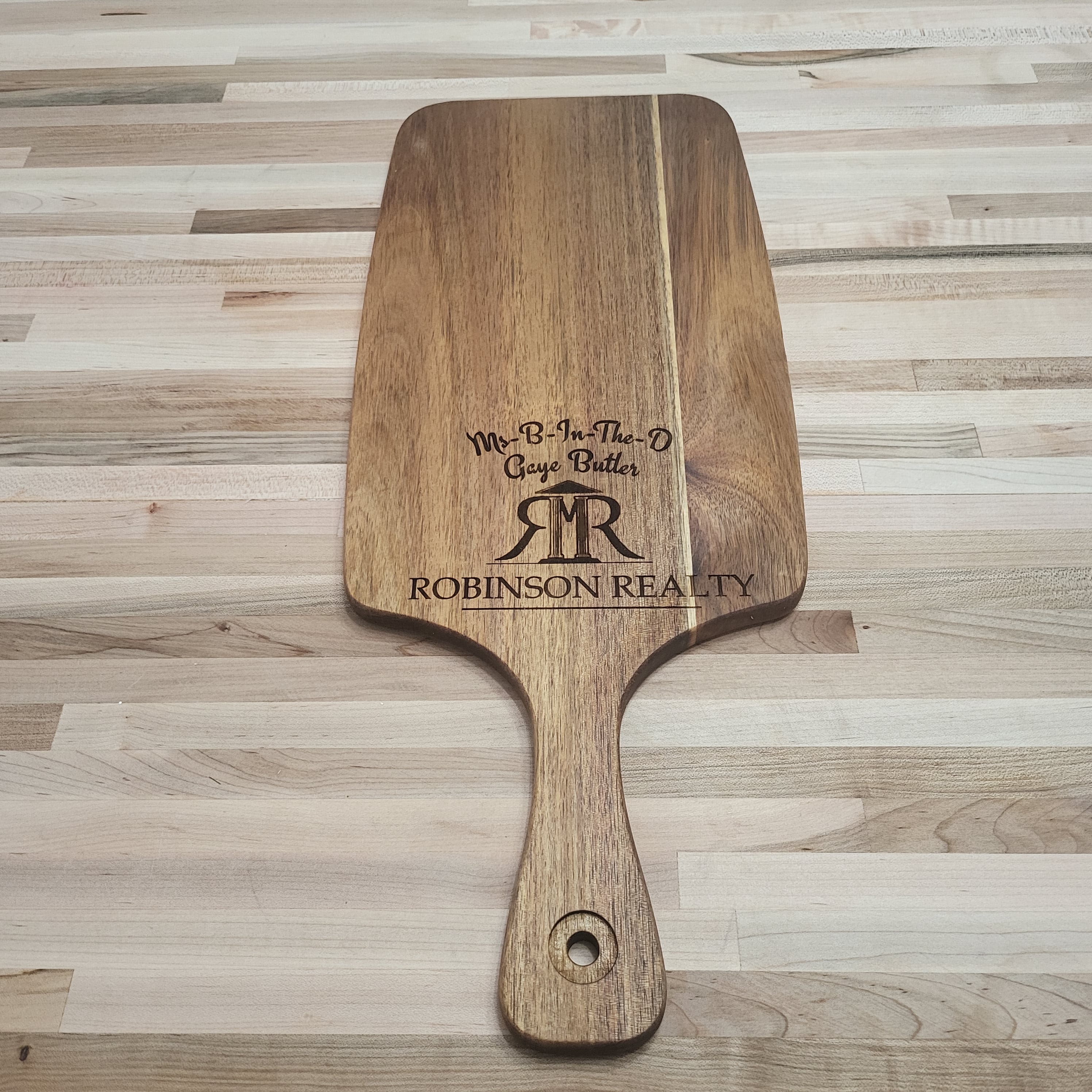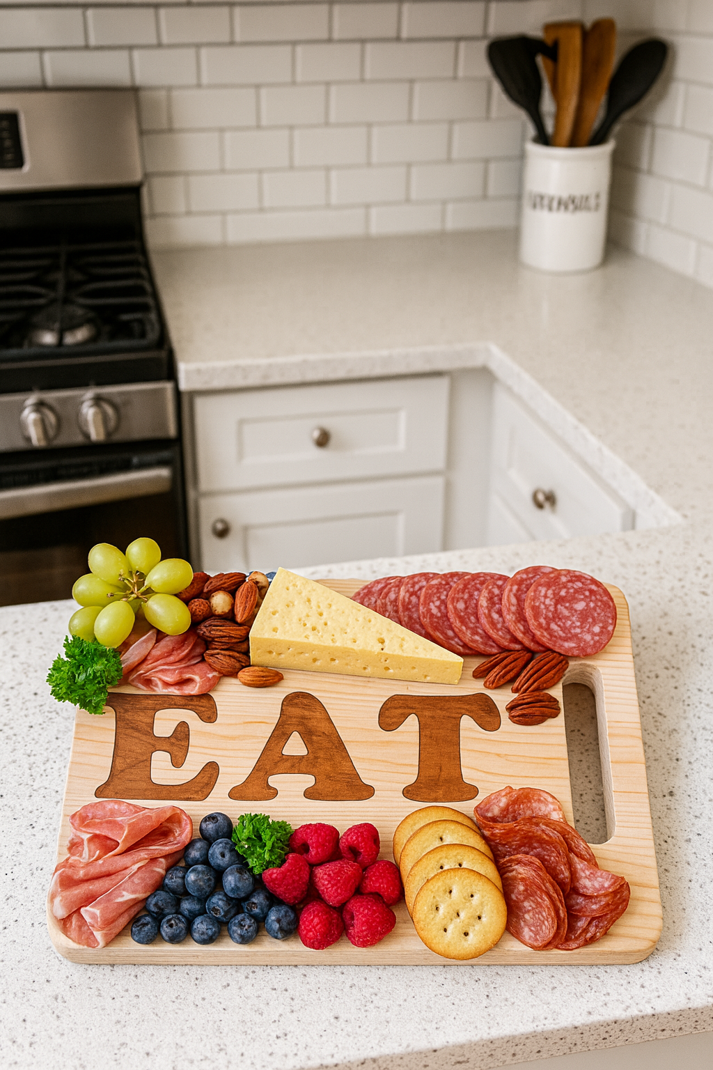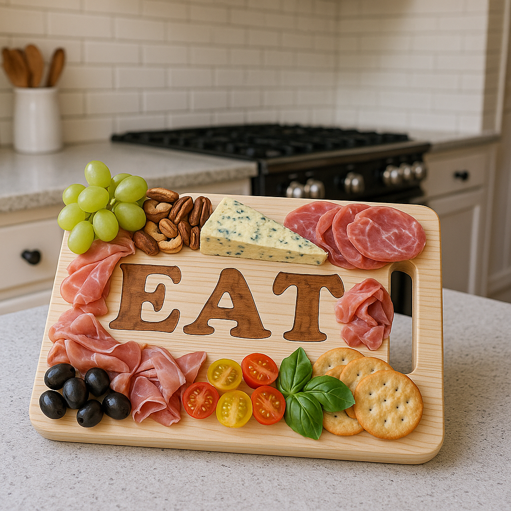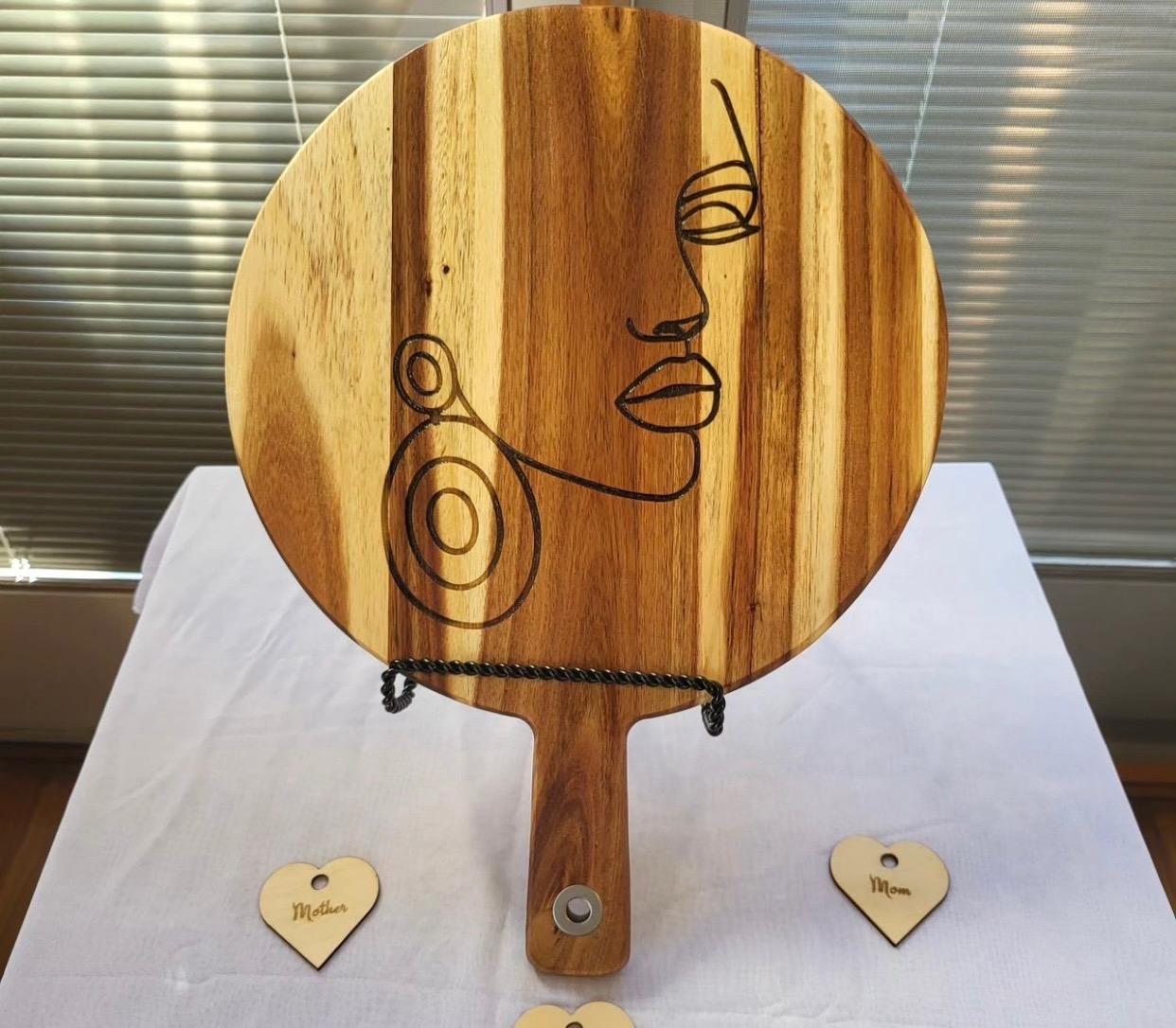 Hand-made laser-engraved cutting boards are unique kitchen accessories crafted with precision and care. Each board is made from high-quality wood, providing a durable and functional surface for all your cooking needs. The laser engraving allows for intricate designs, personalized messages, or custom logos, making it a perfect gift for weddings, housewarmings, or special occasions.