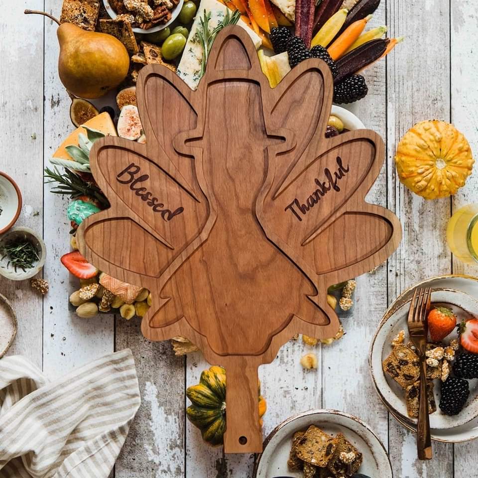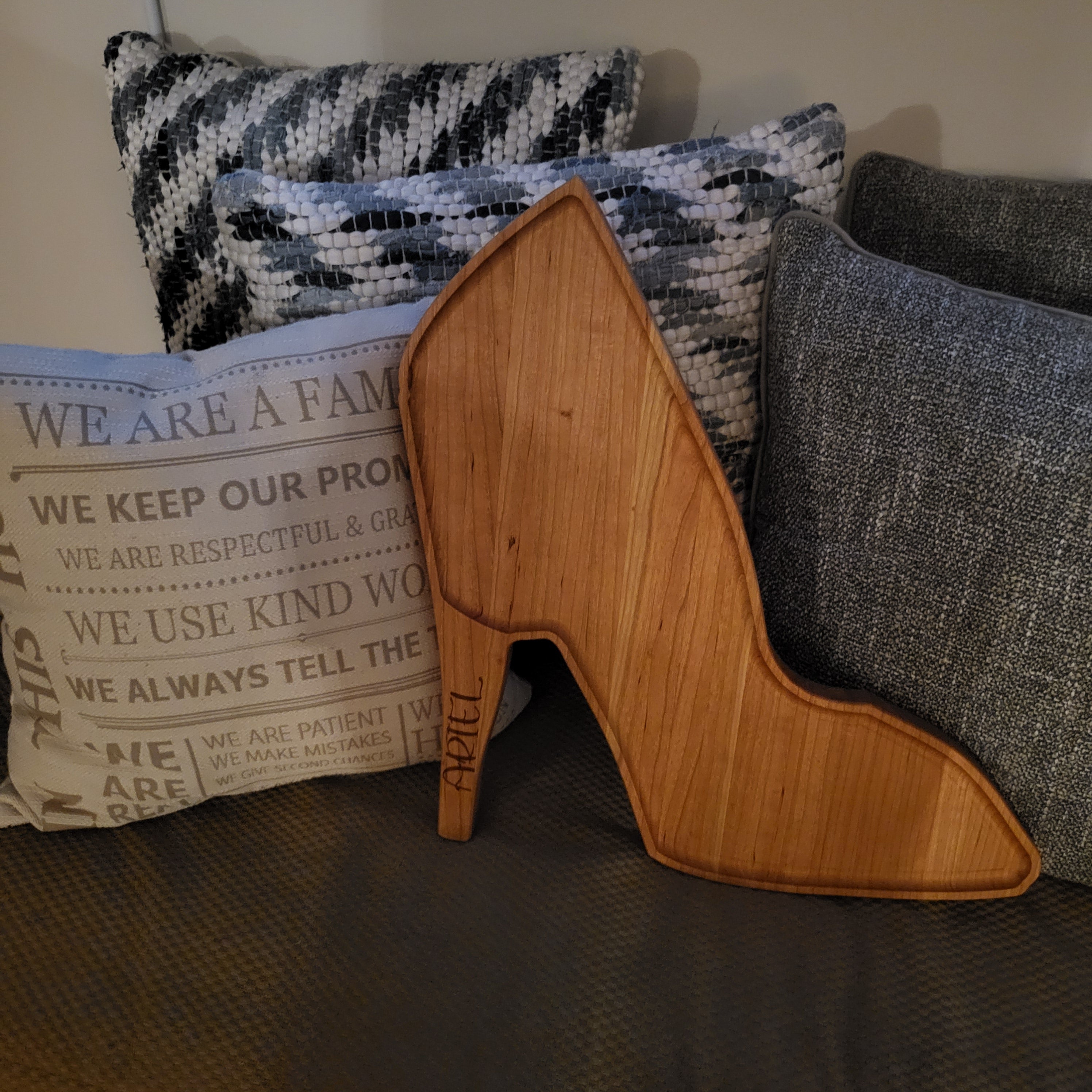 Featuring a smooth finish, the cutting board is not only practical for chopping and slicing but also serves as an attractive serving platter for cheese, charcuterie, or appetizers. Its natural wood grain adds warmth and elegance to your kitchen decor or other rooms in your home. Easy to clean and maintain, this cutting board is a blend of artistry and functionality, ideal for both everyday use and special gatherings.
