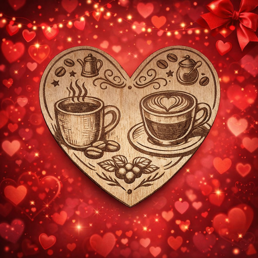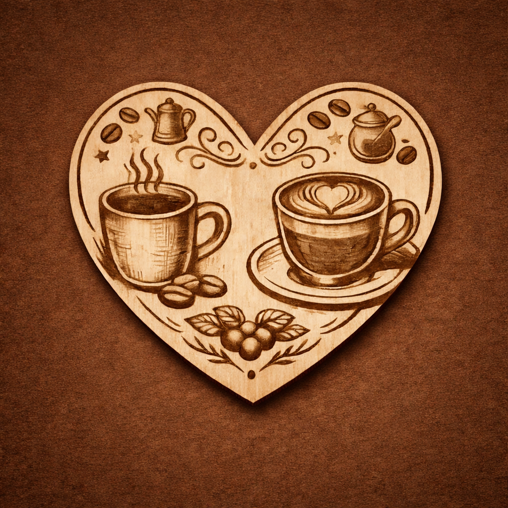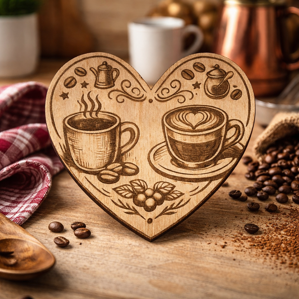 Heart Shaped Natural Wood Coffee Vintage Coaster (Set of 4)